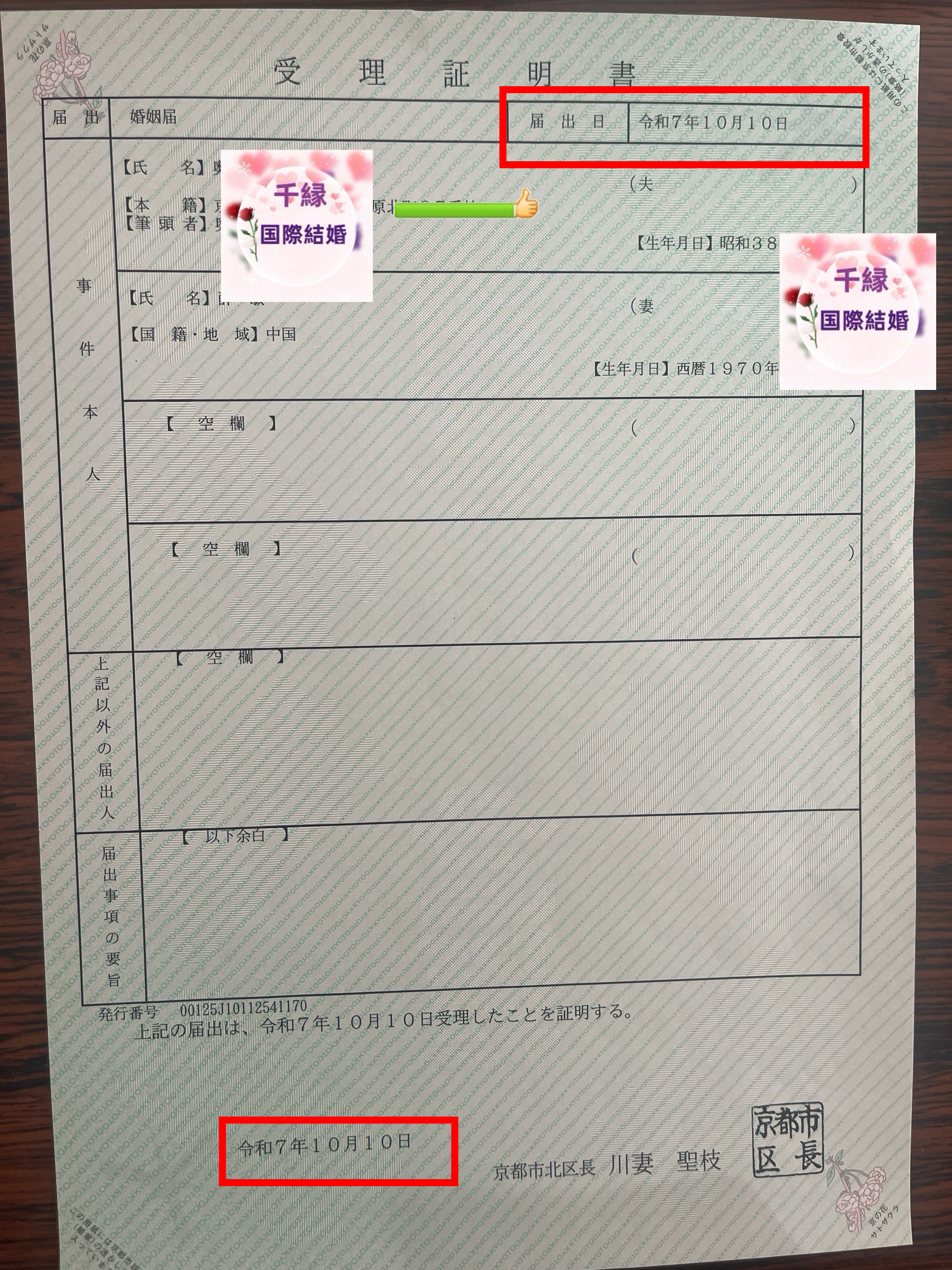 中国55歳上海な女性と日本京都62歳男性ご成婚おめでとう御座います♪㊗️🎊